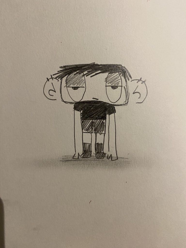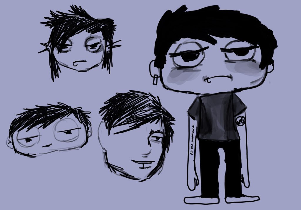 I wanted to try out new styles as i always draw humans realistically, or less cartoon like. i took inspiration form characters like mob from mob psycho 100 and game characters like Mario and sonic. i liked the idea of a short character and a tall character as this can be humorous depending on the context.